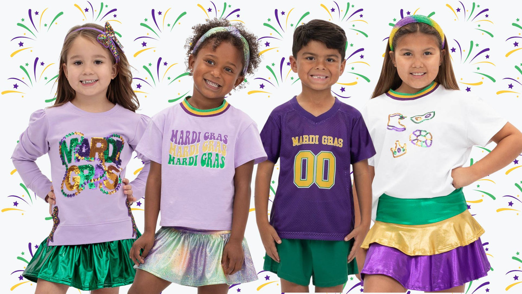 Mardi Gras Sequin Boot on Purple Long Sleeve