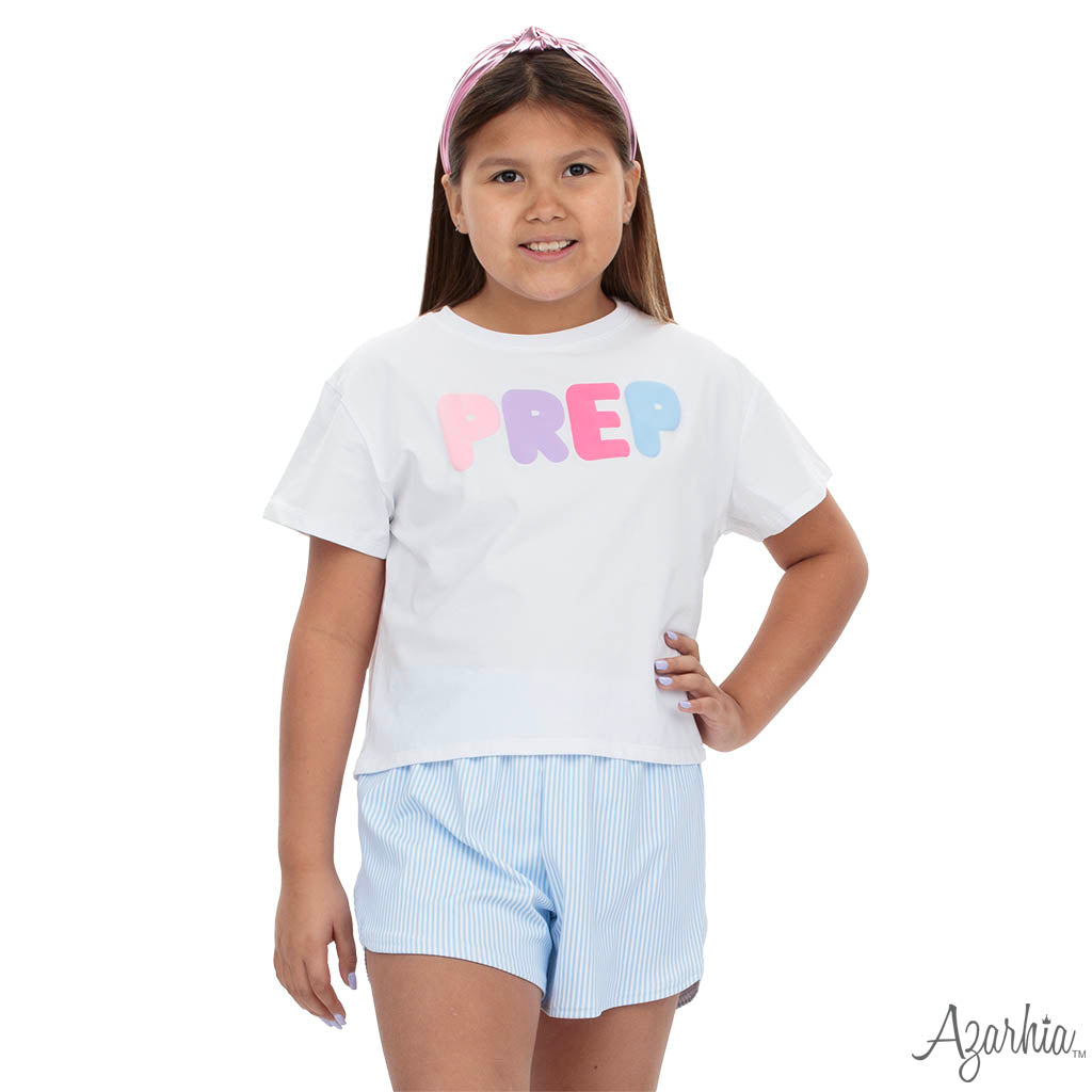Get prepped and ready in this crisp white boxy tee featuring a bold screen-printed design that makes a statement.