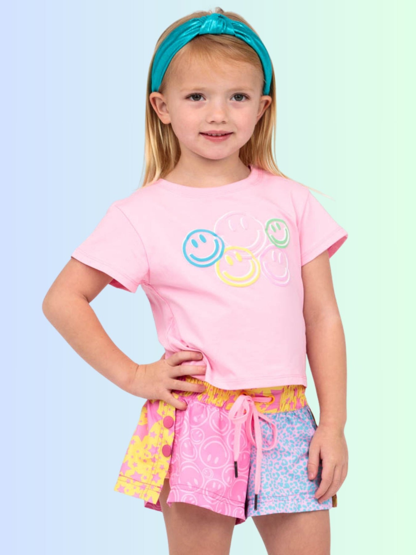Smiley Face Puffy Screen Print on Pink Boxy SS126